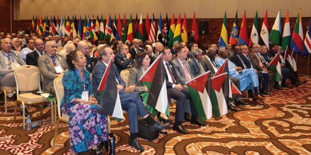 وخلال الجلسة الافتتاحية لهذا المؤتمر أجمع المتدخلون على مساندتهم للشعب الفلسطيني الذي يتعرض لإبادة جماعية وجرائم ضد الانسانية مكتملة الأركان، مطالبين المجتمع الدولي بالتدخل العاجل لوقف هذا العدوان وإدخال مساعدات إنسانية بشكل عاجل الى قطاع غزة. وفي هذا الصدد، أعرب رئيس منظمة الوحدة النقابية الإفريقية، فرانسيس آتوولي، عن تضامنه مع الشعب الفلسطيني الذي يتعرض –مثلما قال– إلى إبادة جماعية من طرف الكيان الصهيوني واصفا هذه المجازر بجرائم ضد الإنسانية وإزاء ذلك، ناشد المجتمع الدولي بالتدخل العاجل لوقف إطلاق النار والسماح للمساعدات الإنسانية بالدخول إلى قطاع غزة التي يعيش وضعا إنسانيا كارثيا. بدوره أكد الأمين العام لمنظمة الوحدة النقابية الإفريقية، أرزقي مزهود، أن ما يتعرض له الشعب الفلسطيني لا يعدو عن كونه جريمة حرب ممنهجة تتم بصورة علنية تحت أنظار العالم مناشدا في السياق ذاته ضمير الإنسانية بالتحرك العاجل لحماية أصحاب الأرض من العدوان الذي طالهم بشكل وحشي. من جانبه، دعا الأمين العام للاتحاد العام للعمال الجزائريين، أعمر تاقجوت، المجموعة الدولية إلى التحرك الفوري لوقف العدوان الصهيوني على الشعب الفلسطيني والسماح بإدخال المساعدات الإنسانية الى قطاع غزة وفي ذات المنحى طالب الأمين العام للاتحاد العام لعمال فلسطين، عبد القادر عبد الله، كل أحرار العالم بالعمل على الوقف الفوري للمجازر الوحشية التي يرتكبها الاحتلال الصهيوني ضد السكان العزل في قطاع غزة وفتح ممرات آمنة لدخول المساعدات الإنسانية وفك الحصار عن القطاع.