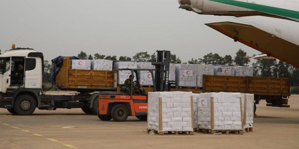 شرع الهلال الأحمر الجزائري، اليوم الاحد، في شحن 150 طنا من المساعدات الإنسانية إلى الأشقاء الفلسطينيين عبر القاعدة العسكرية ببوفاريك (ولاية البليدة), حسب ما أفاد به بيان لهذه الهيئة ذات الطابع الانساني.