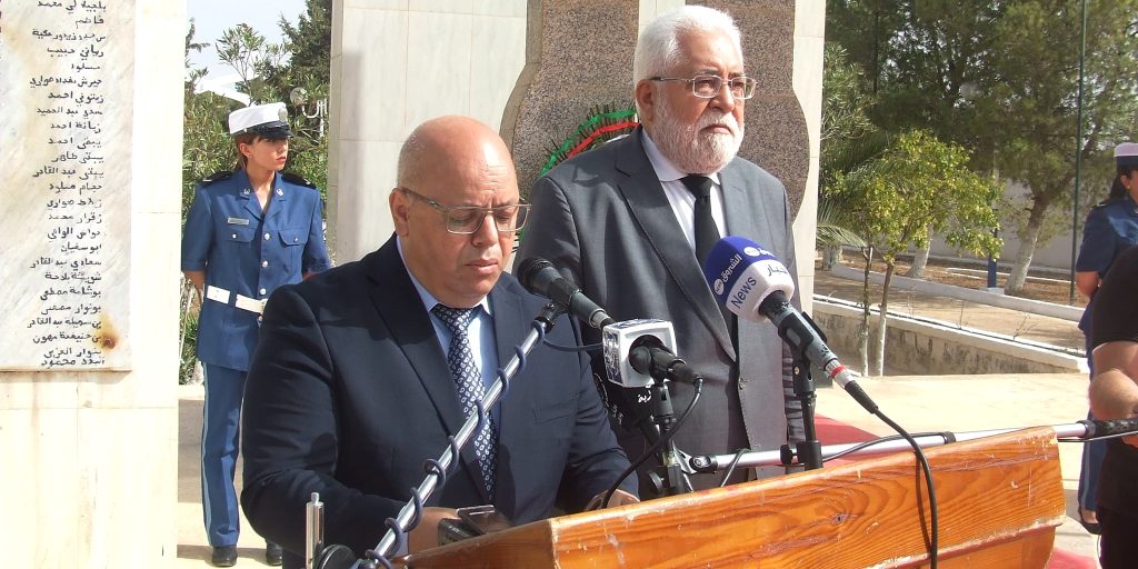 وأردف الوزير قائلا : “تعود بنا اليوم الذاكرة إلى إستحضار تلك المآثر الطافحة بمعاني الإصرار والتحدي من طرف أبناء الشعب الجزائري على كسب معركة الحرية واسترجاع السيادة واستحضار جسيم التضحيات وعظيم البطولات لرجال أعطوا أمثلة حية عن الشجاعة ونكران الذات باذلين النفس والنفيس في سبيل الوطن”.