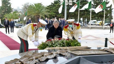 قامت الوزيرة الأولى الفرنسية, السيدة إليزابيث بورن, بعد ظهر اليوم الأحد بمقام الشهيد (الجزائر العاصمة), بوضع إكليل من الزهور والوقوف دقيقة صمت أمام النصب التذكاري المخلد لأرواح شهداء الثورة التحريرية المجيدة.