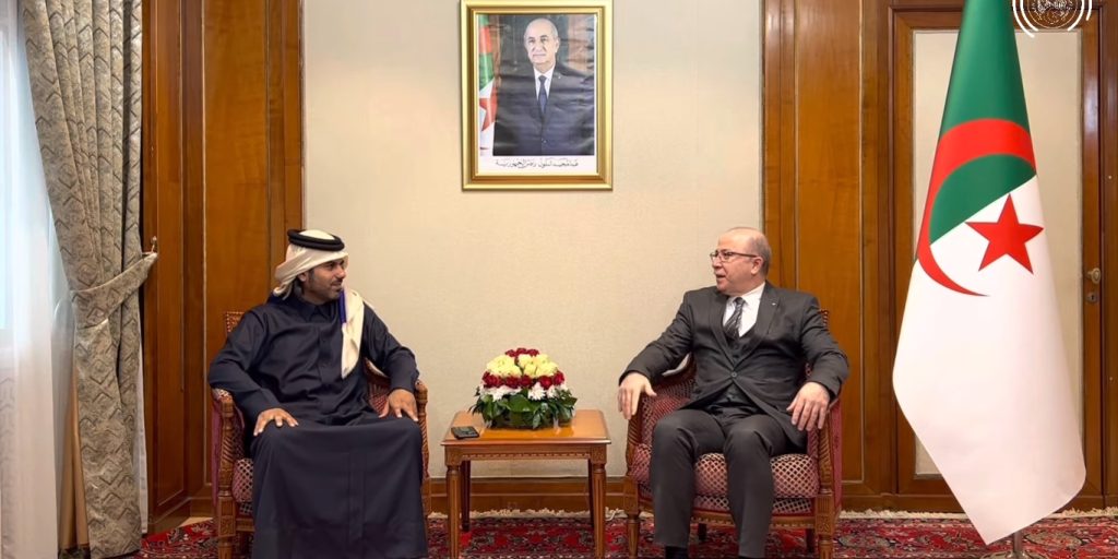 استقبل، الإثنين، الوزير الأول، السيد أيمن بن عبد الرحمن، بقصر الحكومة، الشيخ نايف بن عيد آل ثاني، رئيس مجلس إدارة مجموعة شركات “رتاج”، ونائب رئيس مجلس إدارة صندوق التنمية العربية السياحية، وعضو رابطة فنادق قطر، الذي يقوم بزيارة عمل إلى الجزائر.