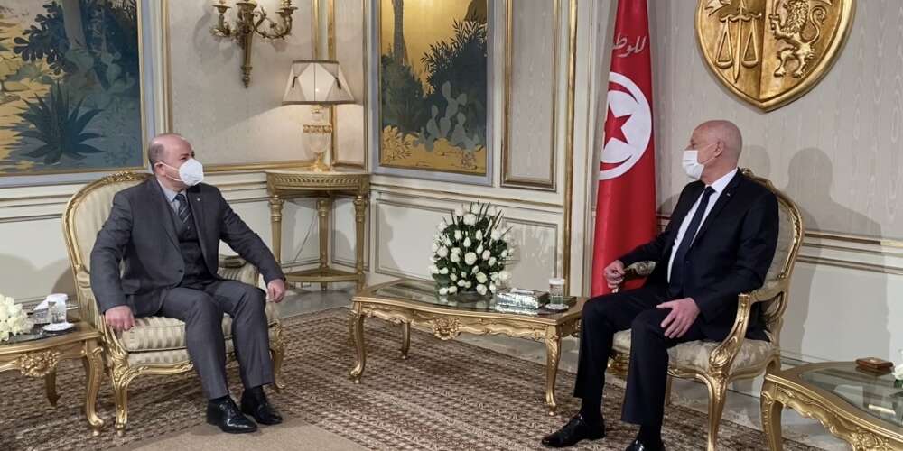 وقد جرى الاستقبال بقصر قرطاج الرئاسي, بحضور رئيسة الحكومة التونسية نجلاء بودن, ووفدي البلدين.