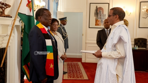 قدم السيد الولي موسى الزاوي، أوراق اعتماده الاربعاء للرئيس الزيمبابوي السيد اميرسون دامبودزو منانغاغوا سفيرا مفوضا فوق العادة للجمهورية الصحراوية لدى جمهورية زيمبابوي .