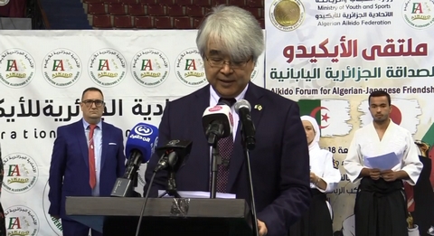 من جهته، قال سفير اليابان بالجزائر، كونو أكيرا، إنها مناسبة عظيمة لإبرام عقد الهبة وسط جموع من ممارسي الايكيدو، أشكر الاتحادية على الجهود المبذولة لتعميم، ليس فقط الفن القتالي المذكور، بل وحتى الكاندو فن سيف الساموراي، التقليدي والعريق في اليابان.