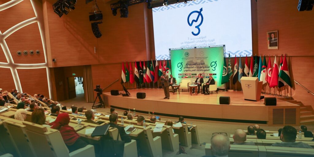 ويهدف المؤتمر أيضا –حسب السيد زدارة– إلى تعزيز المنظومة القانونية والبيداغوجية والهيكلية للقطاع عربيا وبلورة إطار مرجعي عربي موحد للمؤهلات لضمان جودة التدريب والتكوين بما يتماشى والمعايير التي يتطلبها سوق العمل عربيا ودوليا وكذا تطوير آليات تعزيز مساهمة القطاع في سوق العمل وتنمية الاقتصاديات الوطنية