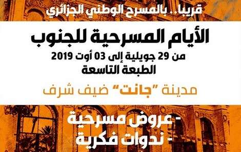 تنطلق، الاثنين، بالمسرح الوطني الجزائري “محي الدين بشطارزي” وإلى غاية الثالث من شهر أوت القادم، فعاليات الطبعة التاسعة من تظاهرة “الأيام المسرحية للجنوب” بمشاركة 8 فرق مسرحية من ولايات الجنوب الجزائري وهي أدرار، بشار، تمنراست، تيندوف، البيض، الوادي وغرداية، إلى جانب مدينة “جانت” التي ستكون ضيف شرف هذه الدورة.