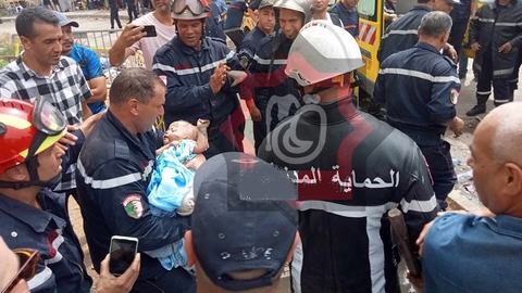 تمكنت مصالح الحماية المدنية بعنابة من انقاذ رضيعة من تحت الردوم وهي على قيد الحياة كانت محل بحث عقب الانفجار الذي وقع اليوم في عمارة سكنية ببلدية البوني بعدما سجلت 12 مصابا جرّاء انفجار حدث اليوم السبت في عمارة سكنية بولاية عنابة .