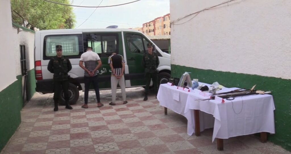 وتم بعد تفتيش منزل الموقوفين, استكمالا للتحقيق, العثور على معدات حساسة (نظارات ميدان وأسلحة بيضاء وأسلحة صيد بحرية من الصنف الخامس ووسائل تعبئة الخراطيش وأدوات تنظيف الأسلحة) وكذا كمية من البارود تقدر ب 1 كلغ وكلها معروضة لغرض البيع, يضيف المصدر.