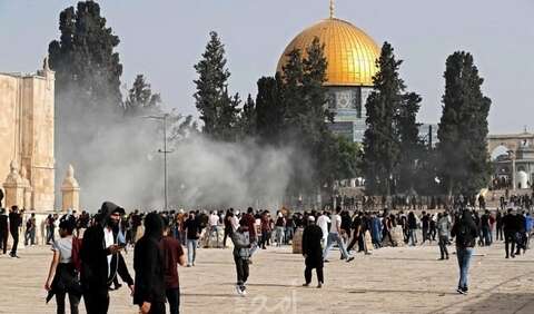 وقال ناشطون إن الهجوم العنيف لقوات الاحتلال على المرابطين في المسجد الأقصى حوّل باحاته إلى “ساحة حرب”،