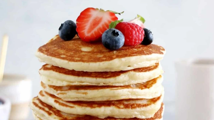 عند التقديم تزين بفواكه طازجة مع العسل أو الشوكولاطة أو السكر الناعم حسب الرغبة.