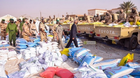 وزعت السلطات الموريتانية بتعاون مع شركة أميركية، 350 طنا من المواد الغذائية الأساسية على أزيد من 4 آلاف أسرة في المناطق الحدودية مع مالي بسبب الوضع “الصعب” الذي يعيشونه.