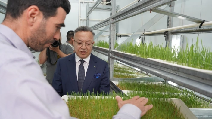 وفي هذا المنحى, يهدف المشروع الأول إلى “تطوير إنتاج العلف الأخضر والتقليل من الإعتماد على الواردات والانتقال نحو زراعة مستدامة, قادرة على التكيف مع التغيرات المناخية”, بحيث يتيح هذا النظام “إنتاجا يوميا يصل إلى 110 كلغ من العلف, عبر زراعة 18 مربعا لإنبات الشعير, ضمن بيئة مناخية خاضعة للتحكم الكامل من حيث الحرارة والرطوبة والإضاءة, مع استخدام أنظمة متقدمة للتهوية وترشيد المياه”.