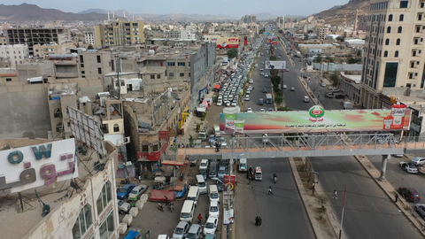 ووثق تصوير جوي في العاصمة أطول طابور للسيارات في صنعاء بسبب انعدام الوقود.