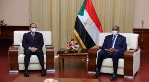 وقالت وفق ما نقلت وسائل إعلام عربية، السبت فإن البرهان، أكد تقديره للمساهمة المصرية في رفع اسم السودان، من قوائم الإرهاب.وأكدت الرئاسة المصرية، بأن السيسي والبرهان، اتفقا على رفض أي إجراءات أحادية، تهدف لفرض الأمر الواقع، والاستئثار بموارد النيل الأزرق.ووصل السيسي، السبت، إلى الخرطوم، في زيارة استمرت ست ساعات، وذلك بعد أيام قليلة من توقيع رئيسي هيئة الأركان المشتركة لدى الجانبين، اتفاقيات عسكرية الأسبوع الماضي، في الخرطوم.