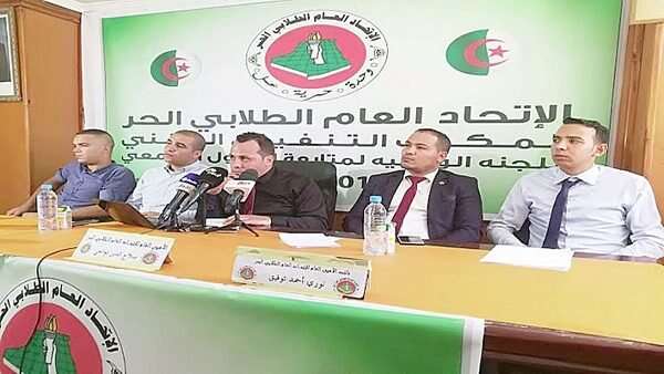 وقرر الاتحاد العام للطلابي الحر، بحسب بيان له، سحب الثقة من شخص المدعو سمير عنصل المنتهية عهدته منذ سبتمبر 2017 وعدم الاعتراف به أمينا عاما ، وهذا عقب اجتماع لأعضاء المكتب التنفيذي الوطني بتاريخ الثلاثاء 19/02/2019 بالمقر الوطني بالجزائر العاصمة بجامعة دالي ابراهيم ، وهذا على وقع المستجدات الخطيرة التي تعيشها المنظمة.