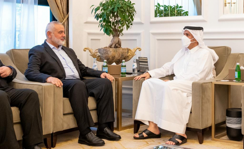 التقى رئيس المكتب السياسي لحركة “حماس”، إسماعيل هنية، الأربعاء، وزير الخارجية القطري، محمد بن عبد الرحمن آل ثاني، في الدوحة.