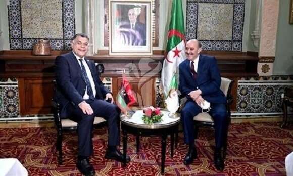وجرى اللقاء اليوم بالجزائر العاصمة على هامش الزيارة الرسمية التي يقوم بها رئيس حكومة الوحدة الوطنية الليبية، عبد الحميد الدبيبة، إلى الجزائر. واتفق الطرفان خلال هذا اللقاء على “تعزيز التعاون في مجال اختصاص الوزارتين”. وشرع رئيس حكومة الوحدة الوطنية الليبية، مساء أمس السبت، في زيارة رسمية إلى الجزائر تدوم يومين على رأس وفد وزاري هام، وكان في استقباله بالقاعة الشرفية لمطار هواري بومدين الدولي، الوزير الأول، عبد العزيز جراد.