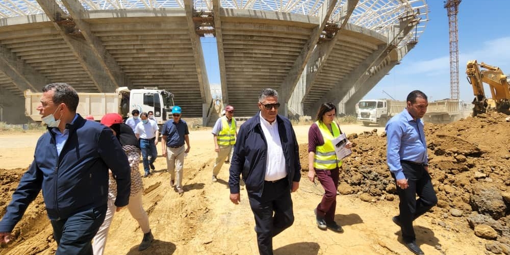 وأفاد بيان لوزارة السكن، الأحد، أن جولة الوزير استهلت بزيارة الأنفاق الثلاثة التي تم البدء في إنجازها منذ الزيارة الأخيرة له، بعدما عرفت توقفاً دام قرابة 3 سنوات، حيث انتهت أشغال الحفر نهائيا بالنفق الغربي الذي يبلغ طوله 120 م والنفق الجنوبي الذي يبلغ طوله 146 م، على أن تنتهي أشغال الحفر بالنفق الثالث خلال الأيام القليلة القادمة، كما أن النفقين الأولين سيتم حسب الخرسانة بهما بداية الأسبوع القادم. كما أضاف البيان، إلى تنقل بلعريبي، إلى الطوابق السفلى للملعب “الطابق الأرضي رقم 1 ورقم 2” والتي ستكون محل متابعة دقيقة من طرف مؤسسة الإنجاز مع زيادة عدد العمال ومضاعفة وتيرة العمل للإنتهاء من أشغال التلبيس والبناء، أما فيما يتعلق بالسقف الخارجي للملعب، فقد طلب برنامج زمني يخص تغطية الهيكل المعدني الخارجي وزيادة وتيرة الإنجاز مع وضع الإضاءة الكافية للملعب التي من شأنها ضمان حماية العمال وأمانهم. وفيما يخص أشغال التهيئة الخارجية، فحسب البيان ذاته، فإنها تعرف وتيرة تقدم ملحوظ، بتحويل قرابة 3000 م -من أصل 1,6 م- من الأتربة ما يسمح بمباشرة أشغال حظيرة السيارات وجدران الإسناد البالغ طولها أزيد من 500 م، وكذا السياج الخارجي للملعب.