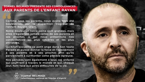 حرص جمال بلماضي، مدرب المنتخب الوطني، على إبداء تعاطفه مع عائلة الطفل المغربي، ريان، الذي وافته المنية بعد معاناة استمرت 5 أيام، إثر سقوطه في بئر.