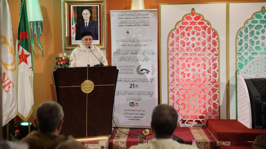 أشرف وزير الشؤون الدينية والأوقاف، يوسف بلمهدي، سهرة السبت بالجزائر العاصمة، على افتتاح فعاليات “جائزة الجزائر لحفظ القرآن الكريم” في فرعيها، المسابقة التشجيعية لصغار الحفظة في طبعتها الـ21 والمسابقة الوطنية لحفظ القرآن الكريم وتجويده وتفسيره في طبعتها الـ 5.