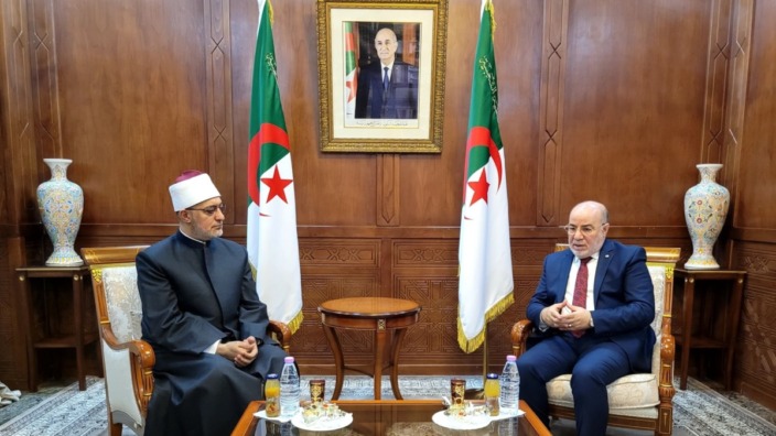 استقبل وزير الشؤون الدينية والأوقاف، الدكتور يوسف بلمهدي، السبت، بمقر الوزارة، مفتي جمهورية مصر العربية، سماحة الشيخ الدكتور نظير محمد النظير عياد، الذي يزور الجزائر بدعوة من المجلس الإسلامي الأعلى، للمشاركة في فعاليات الملتقى الدولي المزمع تنظيمه تحت عنوان: “التعارف الإنساني وأثره في إرساء العلاقات وتحقيق التعايش”.