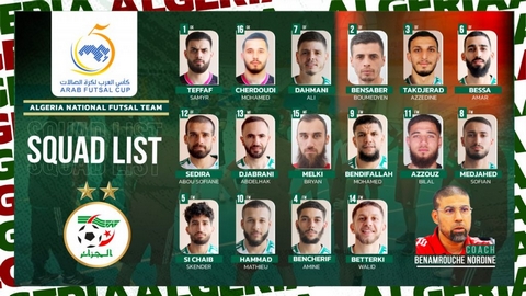 وجه المدرب الوطني لكرة القدم داخل القاعة، نور الدين بن عمروش الدعوة إلى 16 لاعبا تحسبا لكأس العرب، المقرر إجراؤها من 6 إلى 16 جوان بالعربية السعودية.