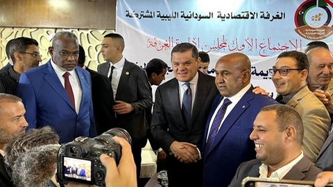 وقال الدبيبة: “سنعمل على التغلب على التحديات التي تواجه تجارة العبور من خلال توفير البنية التحتية المتكاملة من طرق ومنافذ ووسائل النقل لتحريك عجلة الاقتصاد والتجارة بين السودان وليبيا والدول المجاورة له”.
