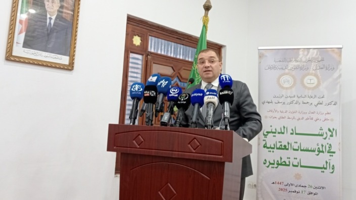 والأحداث). وكشف لطفي بوجمعة، أنه في هذا الإطار تم إلى يومنا هذا، تعيين ما مجموعه 596 مؤطرا دينيا منهم 299 إماما، 206 معلم قرآن 91 مرشدة دينية يشرفون على تأطير دروس الإرشاد والتوجيه الديني، وقد ساعد هذا المورد البشري الملتزم بتأطير 596 قسماً لحفظ وتجويد القرآن الكريم، لفائدة 11022 نزيلا، تمكن منهم 241 نزيلا من حفظ القرآن كاملا. كما أوضح ذات المسؤول، أن نشاط الوعظ والارشاد الديني بالمؤسسات العقابية، عرف تطوراً ملحوظاً، من حيث عدد المحبوسين المستفيدين من مختلف البرامج الدينية، على غرار دروس الوعظ والإرشاد وأقسام حفظ القرآن الكريم، حيث تساهم هاته البرامج بقدر كبير في دعم الاستقرار الديني النفسي، وبعث الطمأنينة في نفوسهم، إضافة الى ما يضفيه الاحتفال بمختلف الأيام والأعياد الوطنية والدينية، وتنظيم المسابقات في مجال حفظ وترتيل القرآن الكريم، حفظ الأحاديث. مشيرا في ذات السياق، أن هذا الملتقى سيسمح بلا شك، بتقييم الواقع ومسار حافل من العمل المشترك، من خلال تحليل واقع الإرشاد الديني داخل المؤسسات العقابية، وتحديد العوامل التي تحد من تأثيره وحسن سيره.