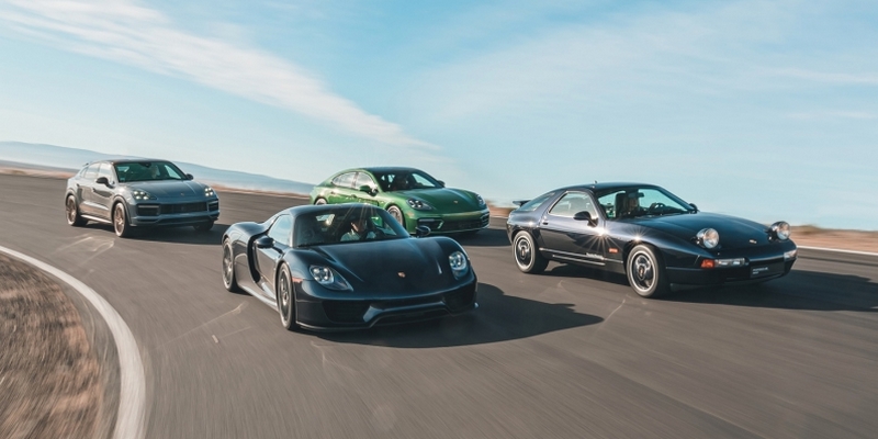 يظهر الفيديو 928، وشقيقتها كايين التي كانت ثاني سيارة بمحرك 8 سنلدر من بورش، نشاهد أيضاً باناميرا وسبايدر RS التي ما تزال واحدة من أكثر السيارات الخارقة تميزاً بنظام هجين من محرك وقود ومحركين كهربائيين.