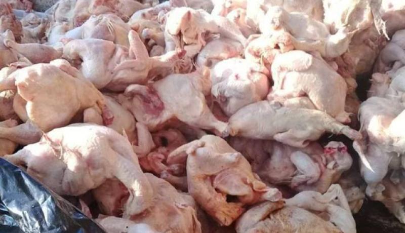 كما تم معاينة الحمولة من طرف الطبيب البيطري الذي أثبت بأنها فاسدة وغير صالحة للاستهلاك البشري لانعدام شروط الحفظ والنقل كما أنها مجهولة المصدر.