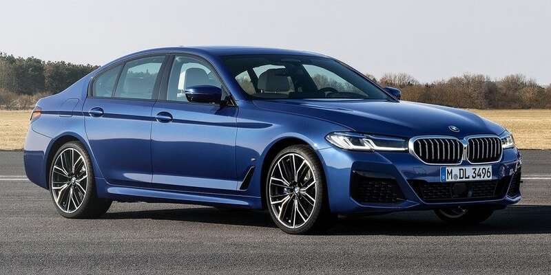 تأتي السيارة المحدثة لموديل 2021 بمظهر جديد حاد مع العديد من التقنيات الجديدة، يمكننا تمييز التصميم الخارجي بسهولة للفئة الخامسة المحدثة من خلال مصابيح أمامية LED متكيفة ذات تصميم نحيل، والتي أصبحت ميزة أساسية للسيارة. تأتي الواجهة الخلفية بمصابيح محسنة أيضاً، وتضيف مخارج عادم مضلعة الشكل، أما رزمة M Sport فسوف تضيف المزيد من التفاصيل وقطع الكربون فايبر حول السيارة. بعكس التحديثات الخارجية البارزة حصلت بي إم دبليو الفئة الخامسة على تحديثات داخلية بسيطة تشمل تحديث النظام الترفيهي إلى iDrive 7 مع شاشة لمس مقاس 12.3 إنش ودعم أنظمة أبل كار بلاي وأندرويد أوتو، أما السائق فقد حصل على لوحة عدادات رقمية أيضاً بقياس 12.3 إنش.