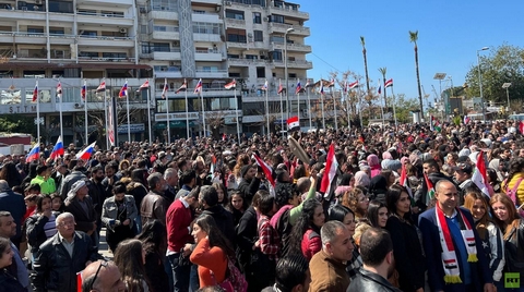 احتشد الآلاف في ساحة المحافظة بوسط مدينة اللاذقية السورية،الاثنين في وقفة تضامنية تأييدا للموقف الروسي في العملية العسكرية الخاصة بأوكرانيا.