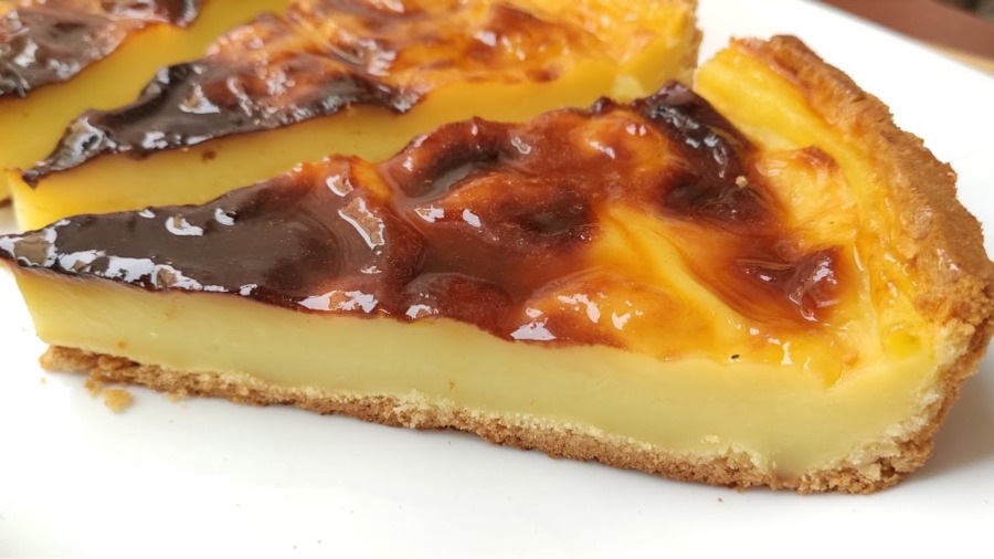 في إناء نضع الماء ليسخن جيدا في ذلك الحين، نضع البيض مع رشة الملح والفانيلا والسكر ونمزج جيدا بالضراب اليدوي، نضيف الحليب الغبرة وعطر الموز مع التحريك ثم نضيف المايزينة نمزج جيدا قبل إضافة كمية قليلة من الماء الساخن مع المزج المستمر السريع لكي لا يطبخ البيض، ثم نعيد إفراغ مزيج البيض والماء على الماء السخن المتبقي الموجود بالإناء دائما مع التحريك السريع المستمر، نعيده على النار ونتركه يغلي ويتكاثف مع التحريك المستمر نفرغها مباشرة على العجين, إذا لاحظنا بعد افراغ الكريمة على العجين أن حواف عجينة التارت عالية على سطع الكريمة، نزيل العجين الزائد وندخلها إلى فرن مسخن مسبقا على 180 درجة تطهى من الاسفل حتى يأخذ عجين التارت اللون الذهبي الغامق، حينها نشعل النار من الأعلى حتى تحمر جيدا نخرجها من الفرن ونطلي وجهها بالجولي (النباج) ونتركها تبرد جيدا بالثلاجة لـ 6 ساعات.