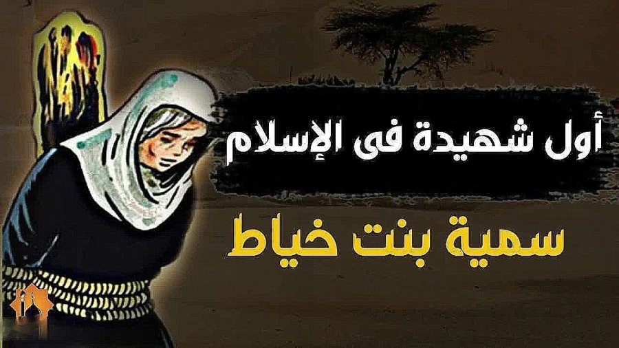 وهي أول شهيدة في الإسلام، هذه الصحابية الجليلة لم تكن ذات حسبٍ، ولا نسبٍ، ولا جمال، بل كانت عبدة ضعيفة ساقَهَا الذُّل قبل انتشار الإسلام لمكة حتى تتخلّص هي وعائلتها من الاستعباد. إنّها سمية زوجة ياسر بن عمار، ووالدة عمّار بن ياسر الذي اعتنق الإسلام مُتخفّياً في دار الأرقم، ثم عاد مسروراً إلى أمّه يُبشّرها بذلك الدين العدل، ويتلو عليها: ” يَا أَيُّهَا النَّاسُ إِنَّا خَلَقْنَاكُمْ مِنْ ذَكَرٍ وَأُنْثَى وَجَعَلْنَاكُمْ شُعُوبًا وَقَبَائِلَ لِتَعَارَفُوا إِنَّ أَكْرَمَكُمْ عِنْدَ اللَّهِ أَتْقَاكُمْ إِنَّ اللَّهَ عَلِيمٌ خَبِيرٌ” سورة الحجرات،13 ، فقرّرت فوراً اعتناق الدين الذي سوف يُحرّرها من الذّل، وينشر الكرامة والعدالة. كانت من أول ستة اعتنقوا الإسلام في مكة بعد الرسول عليه السلام، هي وابنها عمّار، حيث بايعت الرسول عليه السلام فور سماعها بالدين، فقد ذاقت هي وعائلتها أقصى أنواع العذاب حتى تترك الإسلام ولكنّها لم تضعف يوماً، كان يمرّ عليه الصلاة السلام وهم يُعذّبون ويقول لهم: ” صبراً آل ياسر، صبراً آل ياسر فإنّ موعدكم الجنة”. بقيت سميّة ثابتة على موقفها حتى تحت وطأة أشد العذاب، وروي إنّه مرّة واحدة فقط انهالت دموعها، وظنّ جلّادها أنها تبكي ألماً وقهراً، لكنّها كانت تبكي على ابنها عمّار الذي كان يُعذّب أمامها، وكانت تُردّد له: ” إيّاك والكفر يا عمار” حتى استُشهدت رضي الله عنها على يد أبو جهل عندما سمعها تردد ” أَحَد، أحد ،الله أكبر” ورفضت الكفر، فطعنها في قلبها، وكانت بذلك أول من استشهد من النساء في الإسلام، ثم لحقت بها عائلتها.