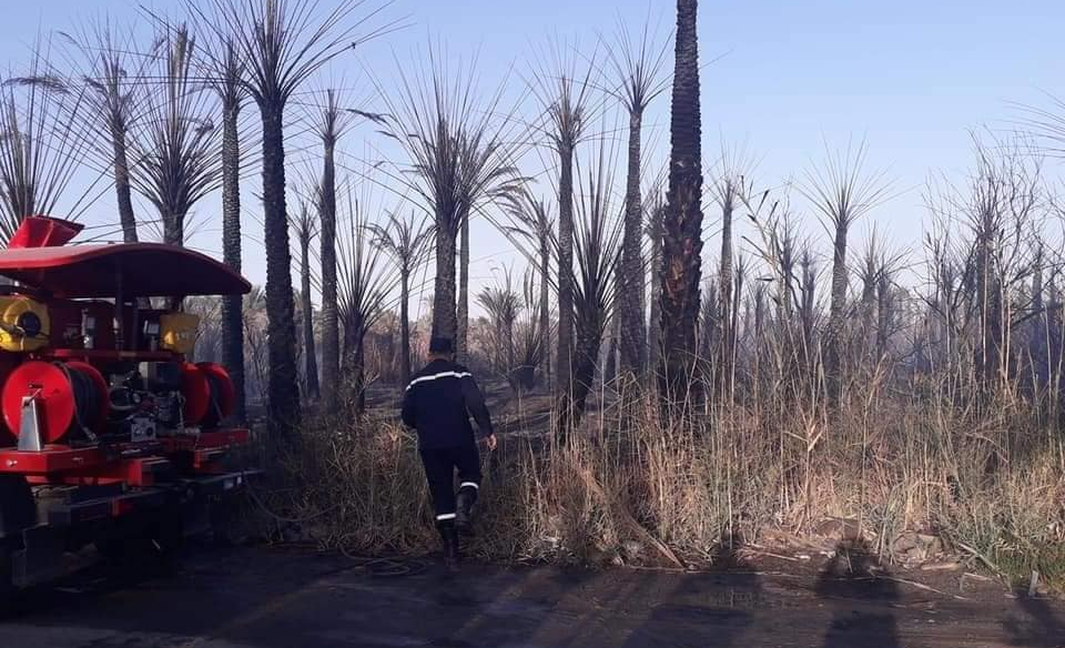 وتم تسخير 06 شاحنات إطفاء بمختلف الأحجام وبتعداد قدر ب:20 عون بمختلف الرتب أين تم السيطرة على الحريق وإنقاذ باقي الواحة وتسجيل احتراق 01 هكتار به (25 نخلة واشجار غير مثمرة واعشاب يابسة).
