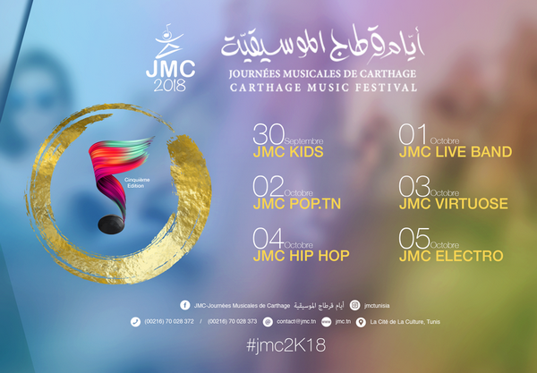 تحتضن مدينة الثقافة بالعاصمة التونسية، السبت، الافتتاح الرسمي لفعاليات الدورة الخامسة لأيام قرطاج الموسيقيّة من 29 سبتمبر وإلى 06 أكتوبر تحت إشراف كلّ من وزارة الشّؤون الثّقافية والمؤسسة الوطنية لتنمية
