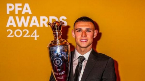 توج فيل فودين، نجم مانشستر سيتي، بجائزة لاعب العام في الدوري الإنجليزي الممتاز، والتي تُقدم من رابطة اللاعبين المحترفين.