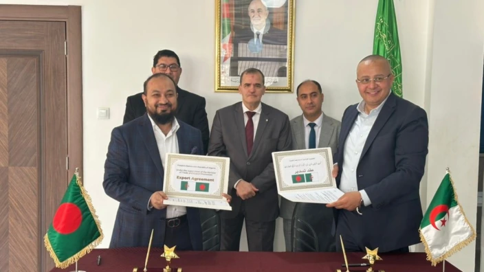 تم التوقيع, الثلاثاء، بالجزائر العاصمة, على عقد تصدير للبروتينات الحيوانية نحو البنغلاديش بقيمة 1,2 مليون دولار بين شركة مذابح الإخوة بلاط والشركة البنغلادشية “أشتا”, حسبما افاد به بيان لوزارة التجارة الخارجية وترقية الصادرات.