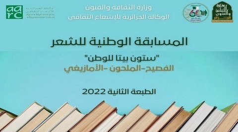 أعلنت الوكالة الجزائرية للإشعاع الثقافي عن إطلاق الطبعة الثانية لمسابقتها الوطنية للشعر بأنواعه الفصيح والملحون والأمازيغي، بمناسبة الذكرى الستين للاستقلال واسترجاع السيادة الوطنية، حسب بيان للوكالة.