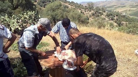 وتؤكد الحاجة زهيرة دزيري، 69 سنة، ابنة بلدية تازقاغت 9 كم جنوبي ولاية خنشلة، أن عائلتها التي تنتمي إلى العرش الأحمر توارثت عملية إعداد “الخليع” خلال اليوم الثالث من عيد الأضحى، مشيرة إلى أنها تقوم سنويا بتحضير شرائح لحم الضلوع والفخذ وتشريحها وفق خطوط رفيعة باستعمال سكين حاد قبل رشها بكميات كبيرة من الملح وتعليقها على الحبل.