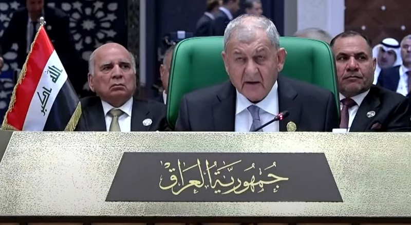 وقال الرئيس العراقي إن القمة العربية بحاجة إلى تفاهم بناء، بما يعزز الأمن والاستقرار والمصالح العليا للدول العربية في ظل لحظة دولية فارقة، و“ إن تحقيق هذه التفاهمات سيجعل المنطقة العربية أكثر قدرة على مجابهة التحديات والمخاطر الدولية الراهنة”، معتبرا أن العراق خاض حربا ضروسا ضد الإرهاب ومستمر في ملاحقة خلاياه، وأن الحكومة العراقية أمامها تحديات كبيرة للإصلاح ومواجهة الفساد.