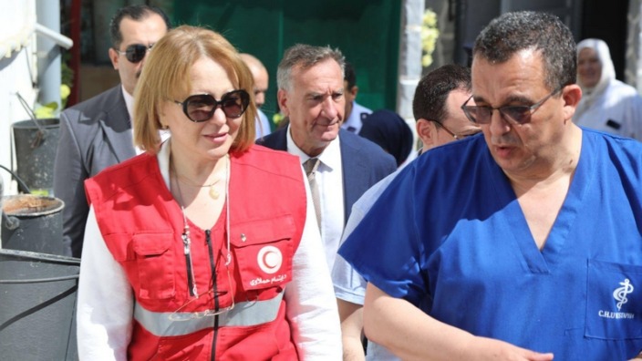 اشرفت رئيسة الهلال الأحمر الجزائري, ابتسام حملاوي, رفقة ممثل المفوضية السامية لشؤون اللاجئين بالجزائر, أليستر بولتون, ورئيس مصلحة الطب الشرعي بالمستشفى الجامعي مصطفى باشا, رشيد بلحاج, على تدشين وحدة تصفية الكلى بمصلحة طب المساجين بذات المستشفى.