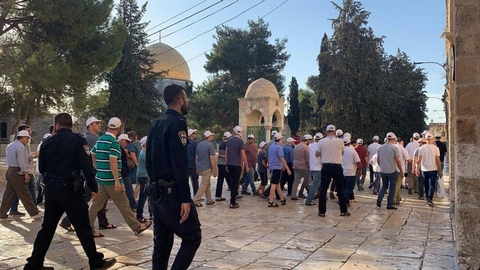 وأوضح مصدر من دائرة الأوقاف الاسلامية، أن “مجموعات من المتطرفين اقتحموا باحات المسجد الأقصى، وقاموا بجولات استفزازية مع أداء بعضهم طقوسا تلمودية علنية، وكل ذلك بحراسة القوات الخاصة الإسرائيلية”.