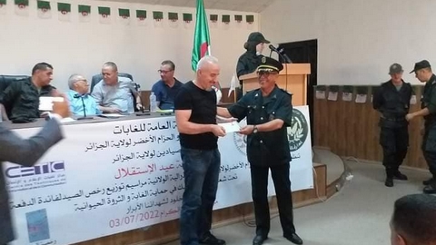 نظمت مديرية الغابات والحزام الأخضر لولاية الجزائر بالتنسيق مع فيدرالية الصيادين لولاية الجزائر تزامنا والذكرى الستين لاستقلال الجزائر بمركز التكوين في تقنيات الاتصال والإعلام الآلي بالمحمدية، مراسيم تسليم رخص الصيد البري لفائدة صيادي ولاية الجزائر لأول دفعة منذ الاستقلال تحت شعار “الصياد شريك فعال في حماية الثروة الحيوانية”.