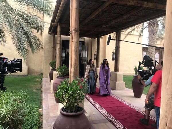 وتجري عمليات التصوير في إمارة أبو ظبي بالإمارات العربية المتحدة، ابتداء في “قصر السراب”، قبل الانتقال إلى مواقع أخرى تفيد حيّز الفضاء التاريخي. وتعتمد الشركة المنتجة على مصممة الأزياء السورية رجاء مخلوف، كما تستند على خبير المكياج الإيراني ياور مع فريقه الخاص، لما لهذين العنصرين من أهمية متزايدة في الدراما التاريخية. ويجمع العمل في بطولته مجموعة كبيرة من الممثلين من سورية والسعودية والإمارات والأردن ولبنان وفلسطين والجزائر والمغرب نذكر منهم قصيّ خولي، عبد المحسن النمر، عابد فهد، ياسر المصري، حبيب غلّوم، كاريس بشّار، آسيل عمران، كندة حنّا، سمر سامي، نادرة عمران، ديمة بياعة، نضال نجم، ديمة الجندي، ريم غزالي، عبد الله الجنيبي، قاسم ملحو، فطيم الشامسي، حنان الجزائرية، مبارك المزروعي، سحر فوزي، زيناتي قدسية، أحمد البايض، نور صعب، خالد نجم، طلال مارديني، أدهم مرشد، جمال العلي، جابر جوخدار، وائل أبو غزالة، علا بدر، إسماعيل مدّاح، غسان عزب، هشام كفارنة، رهف الرحبي، طيف ابراهيم، منذر أبو راس، عبد الرحمن قويدر وآخرين.