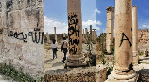 أشعلت، الاحد صور لأحد أعمدة مدينة جرش الأثرية، شمال الأردن بعدما أقدم مجهولون، على تشويهه بالطلاء، غضب مئات الأردنيين على مواقع التواصل.