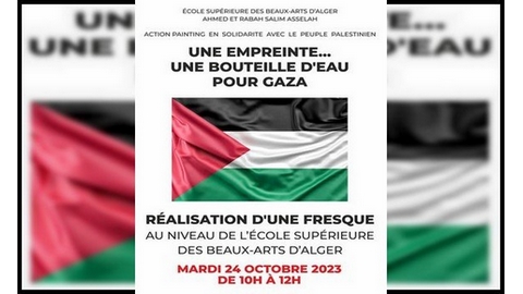 وتترجم هذه اللوحة الجدارية، التي أطلق عليها اسم “بصمة، قارورة ماء لغزة” من خلال بصمات وتوقيعات مكتوبة على لوحة قماشية كبيرة تعكس تضامن الجزائريين مع الفلسطينيين في مأساتهم بعد العدوان الصهيوني الهمجي على قطاع غزة الذي يستمر منذ 7 أكتوبر.