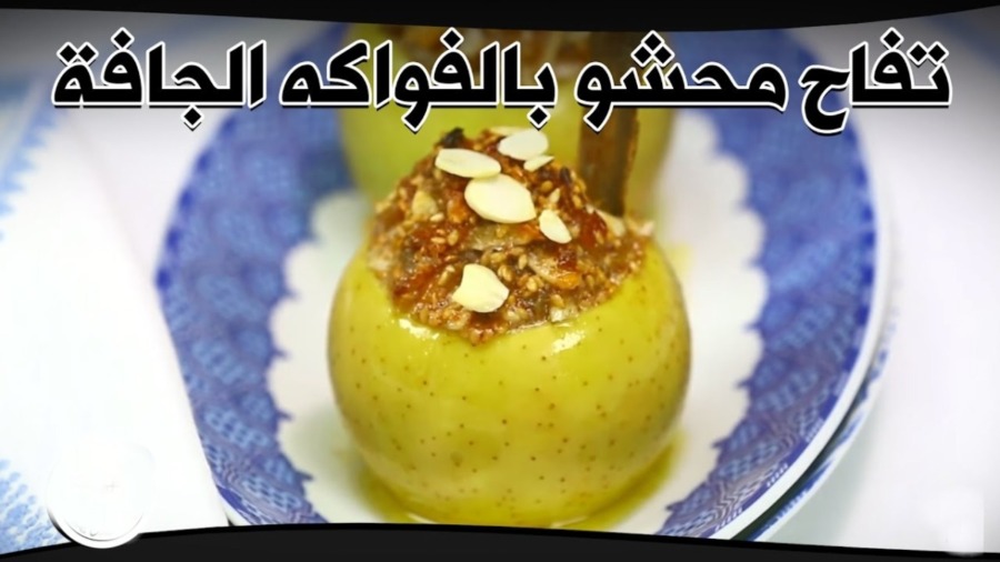 - تحشى حبات التفاح ويزين أعلاها لإعطائها شكلا هرميا.