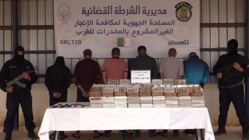 وحسب ذات المصدر، فإن الوحدات العملياتية للأمن الوطني, ممثلة في كل من المصلحة الجهوية لمكافحة الاتجار غير المشروع بالمخدرات بتلمسان وفرقة مكافحة الاتجار غير المشروع بالمخدرات بأمن ولاية عين تموشنت, تمكنت خلال الأسبوع المنصرم من تفكيك شبكتين إجراميتين منظمتين, متكونتين من ثمانية (8) أشخاص, مع ضبط كمية معتبرة من الكيف المعالج قادمة من المغرب, يقدر وزنها بـ279 كلغ و350 غراما وقد نفذت العملية الأولى –يضيف البيان– من قبل فرقة مكافحة الاتجار غير المشروع بالمخدرات التابعة لأمن ولاية عين تموشنت, حيث تمكن عناصرها من تفكيك شبكة إجرامية منظمة تنشط في تهريب هذا النوع من السموم انطلاقا من المغرب, وقد جاءت هذه العملية بعد متابعة دقيقة لتحركات أحد عناصر هذه الشبكة بإحدى الولايات الحدودية الغربية, ما أسفر عن توقيفه رفقة شريكه وحجز كمية معتبرة من الكيف المعالج قدرت بـ165 كيلوغراما. وفي عملية نوعية ثانية, وعلى إثر تحريات ميدانية مكثفة, تمكن عناصر المصلحة الجهوية لمكافحة الإتجار غير المشروع بالمخدرات- تلمسان, من إحباط مخطط إجرامي لشبكة منظمة ثانية, تنشط في تهريب المخدرات عبر الشريط الحدودي لإحدى الولايات الغربية في اتجاه الولايات المجاورة, بعد تنفيذ خطة عملياتية محكمة, أسفرت عن توقيف ستة (6) أشخاص من أفراد هذه الشبكة الإجرامية المنظمة وضبط شحنة من الكيف المعالج قادمة من المغرب, بلغ وزنها 114 كلغ و350 غرام ومكنت العمليتان المنفذتان تحت إشراف النيابة المختصة, أيضا من استرجاع مركبتين (2) كانتا تستعملان في عملية نقل المخدرات. وتم تقديم المشتبه فيهم أمام نيابة كل من محكمة عين تموشنت وعين الصفراء, عن قضايا الاستيراد, الحيازة, التخزين, النقل والإتجار بطريقة غير مشروعة بالمخدرات في إطار جماعة إجرامية منظمة, والتهريب على درجة عالية من الخطورة تهدد الاقتصاد الوطني والصحة العمومية, وفق بيان الأمن الوطني.