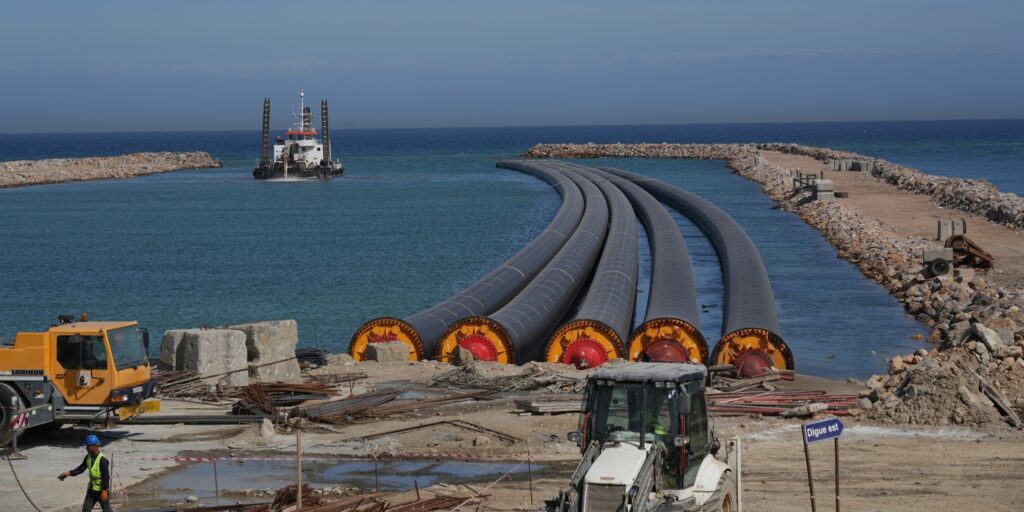 وأوضح البيان أن الأشغال تقدمت ب”شكل ملحوظ”، إذ انتقلت إلى مرحلة إنجاز وحدة سحب المياه في عرض البحر التي أسندت إلى الشركة المتوسطية للأشغال البحرية “ميديترام”، بينما بلغت أشغال الهندسة المدنية والكهرباء والميكانيكا نسبا معتبرة، كما أن هناك وحدات أخرى على وشك التسليم على غرار وحدة الشحن.